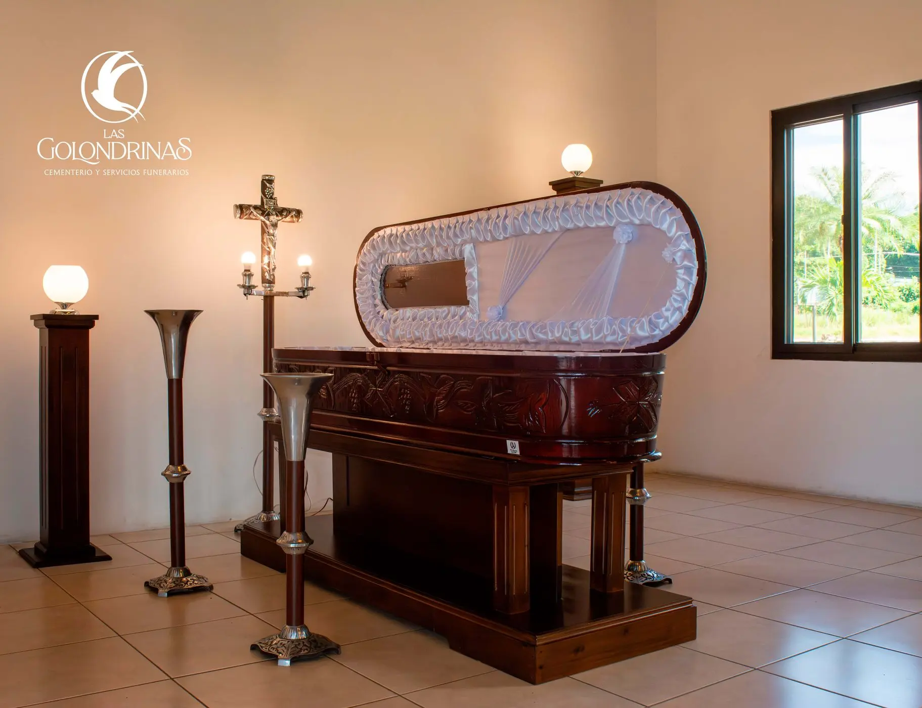• Equipo de velación: de 4 floreros, crucifijo iluminado o texto bíblico, 2 coronarios, 2 candeleros, reclinatorio, pódium, peaña de madera para cofre, 4 lámparas, mesa coctelera para ubicación de recuerdos.